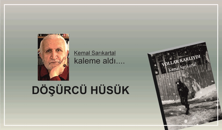 Üstten tek pencereli, kavak ağacından yapılmış kapı, soğuğu önlesin diye kapının yarıklarına hamurla yapıştırılmış gazete kağıtlarının olduğu bir evleri vardı. Babasını erken yaşta kaybetmiş, anası Meryem'le yaşıyordu. Uzun boylu, mavi gözlü, yakışıklı bir gençti Hüseyin. Ciddiydi, kimselerle konuşmaz, yalnızca sorulara cevap verirdi. Yüreği ne söylerse onu yapardı, ürkek bir yanı vardı ama korkmazdı. Onun işi evine aş ekmek götürmekti, adı Döşürcü Hüsük'tü. Sakallarını kesmezdi, sakalı yüzünün örtüsüydü. Elinde sopasıyla gezerdi, sopası onun koruyucu kalkanıydı. Omzunda heybesi, hülyalara dalarak Mamaş, Zerk, Karanlık, Davulbaz, Dayılı köylerini dolaşır; un, bulgur, çökelek, peynir toplardı.