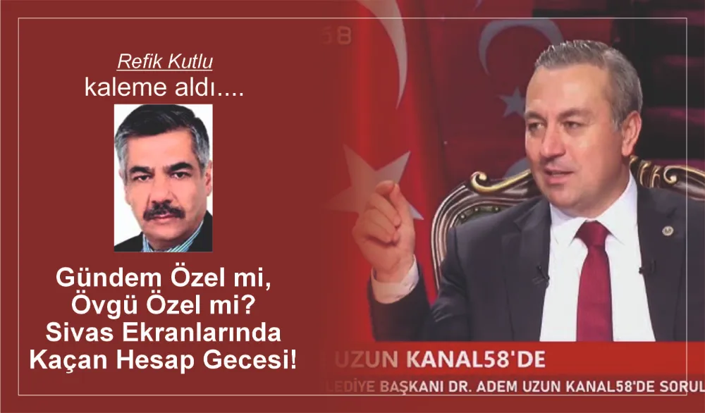Adem Uzun Sivas Belediye başkanı 9 Şubat’ta Kanal 58 ve Belediye Ortak Yayınından-izlenimler-icraat ne tv ekranlarında iki saati aşan bir programa çıktı! Adı gündem özel oldu ama ortada gerçek bir gündem yoktu! Soru var gibi yapıldı ama cevapların altı doldurulmadı! Sivaslı adına soruldu denilen sorular başkanın eksiklerini tamamlayan cümlelere dönüştü!